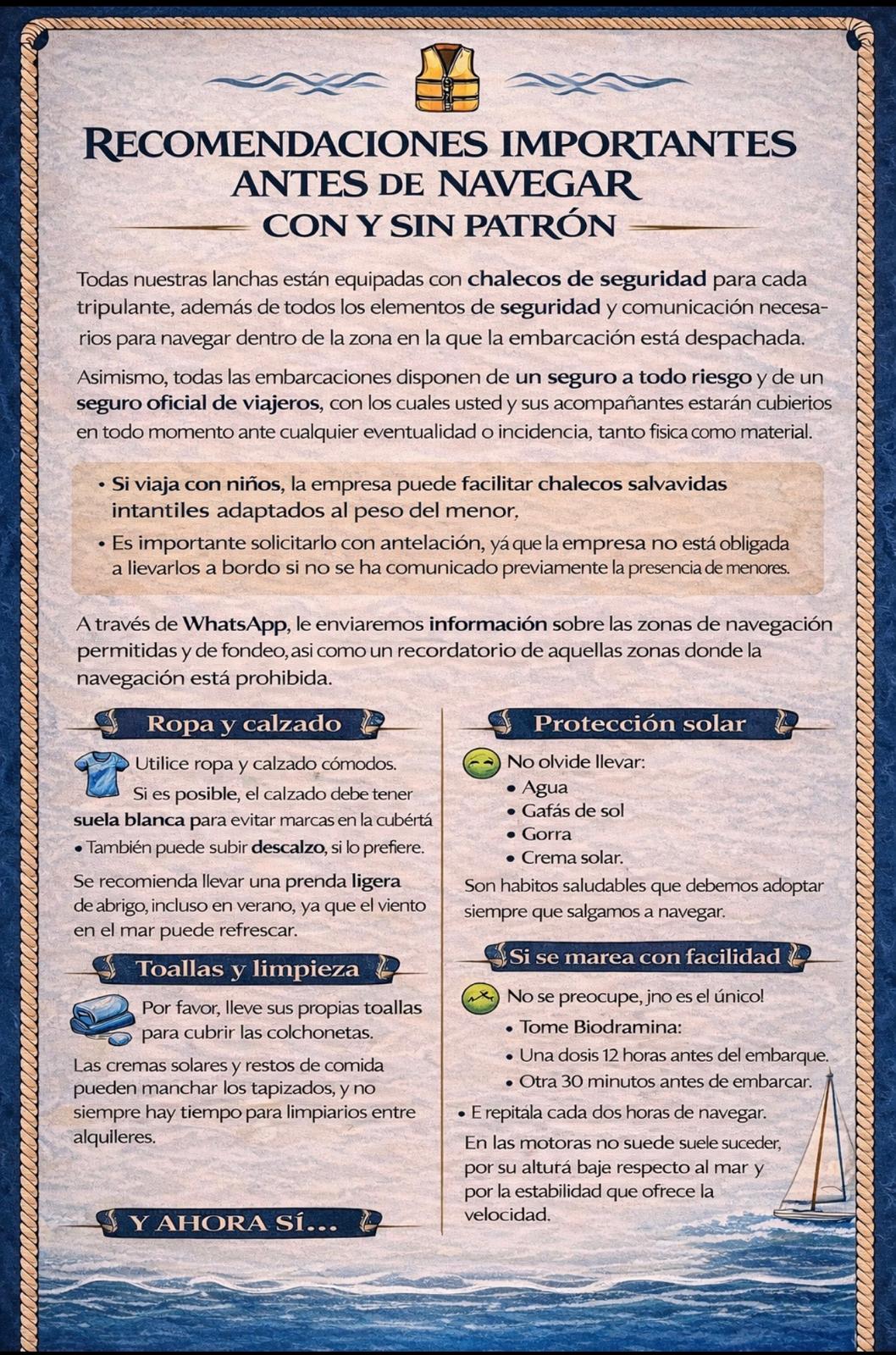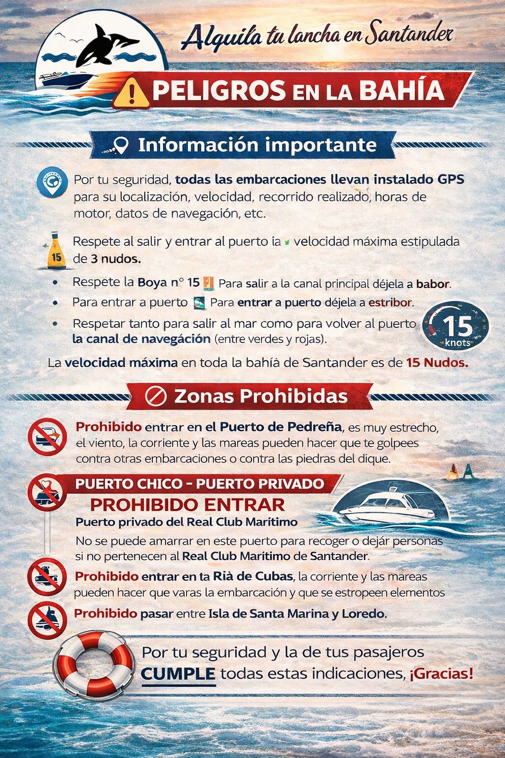 Además los consumos vienen calculados electrónicamente por su contador de litros consumidos del que disponemos en nuestras tres embarcaciones, no pierdas el tiempo en repostar, en Alquila tu Lancha en Santander el tiempo de nuestros clientes es Oro.